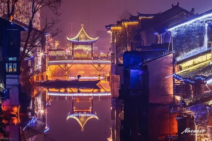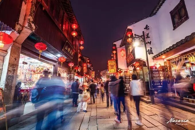 披着斜阳坐在船头,看和倒退的小桥和两旁的市井建筑,还能听着船家的地道苏州话,时不时还能唱两曲江南民谣,这时,时间仿佛就停留和凝固在了这里~当夜幕降临时,也就到了山塘老街。